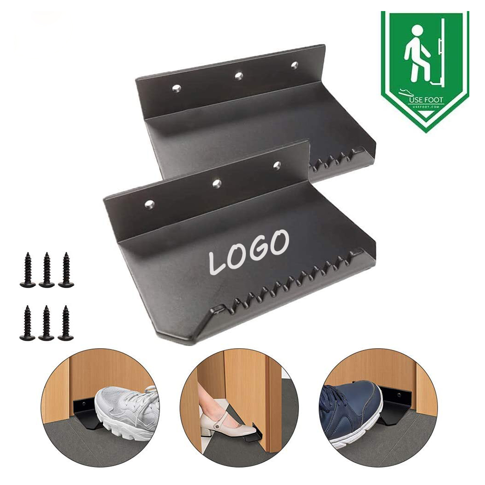 These ingenious foot door openers called hands free foot controlled door opener, it allow you to exit the bathroom hands free, and should really be installed onto every public bathroom door! For restaurants, office, restrooms, home. Prevent cross contamination by not touching public door handles. Avoid germs, open the door when your hands are full, prevent cross contamination, reduce paper towel costs. Made with thick metal. It will last for years to come, Very strong and will not be damaged. The 鈥 Free Foot Door Opener 鈥 is easily installed onto any non-latching inward opening door, by using just 3 included screws to fasten it to the bottom corner of the door. Included to fit doors from 1 陆 inch to 2 inches in thickness.