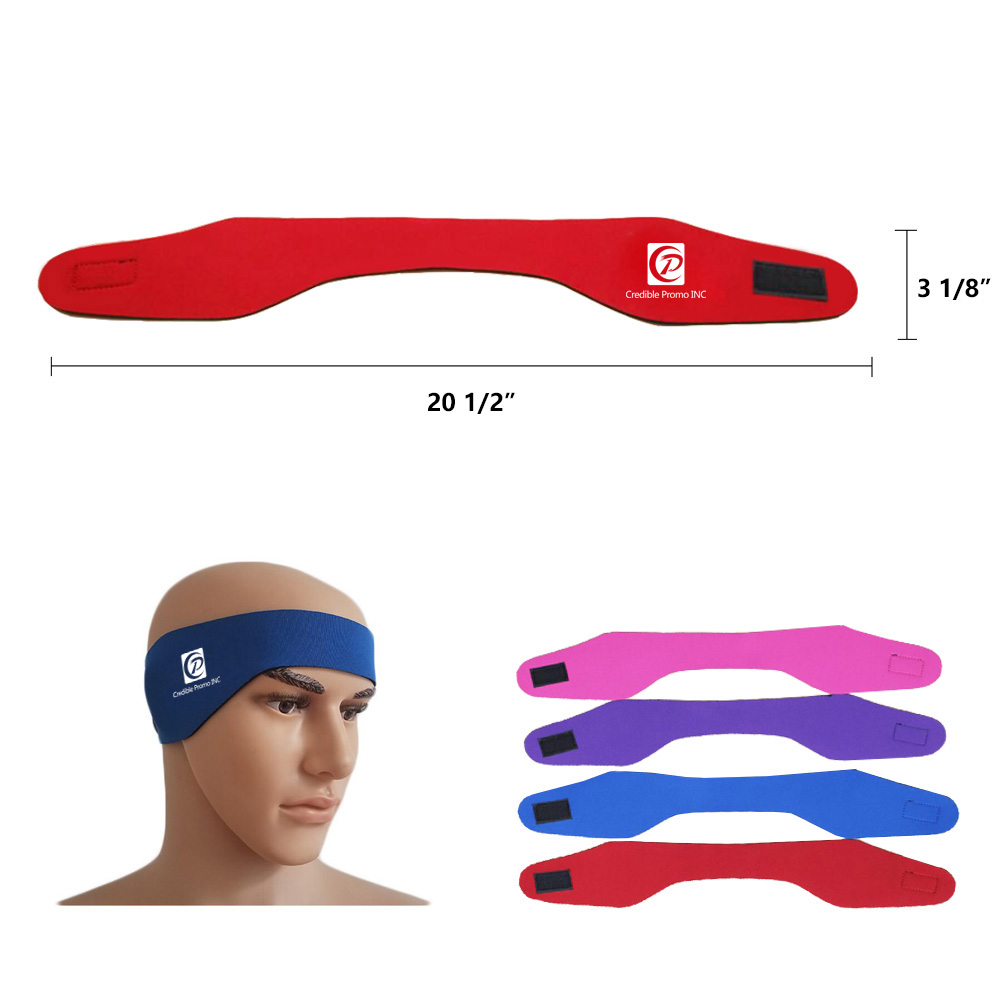 This swimming headband is made of neoprene material. Durable belt closure that provides easy adjustability and strong grip to prevent slipping off the head. Available for child and adult in two sizes. Price given is based on size 20 1/2"Wx3 1/8"H. Perfect for swimming, surfing, canoeing and other kinds of water activities. Colors vary. Please contact us for more details.