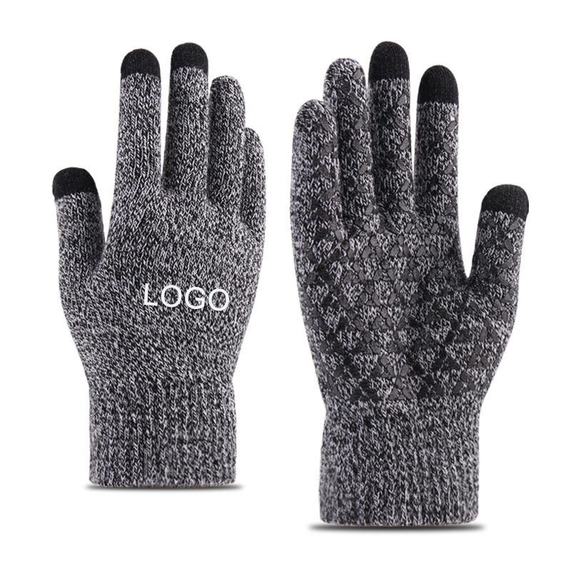 Elevate your winter wardrobe with our premium gloves. Crafted from a blend of 85% Acrylic, 10% Wool, and 5% Spandex, they offer both warmth and flexibility. The non-slip triangular silicone covering the entire palm enhances your grip, while three fingertips feature conductive yarn for easy touch screen use. These gloves provide a snug and comfortable fit with elastic knitted fabric, and the double elastic cuff ensures maximum warmth during colder days. 8.27" L