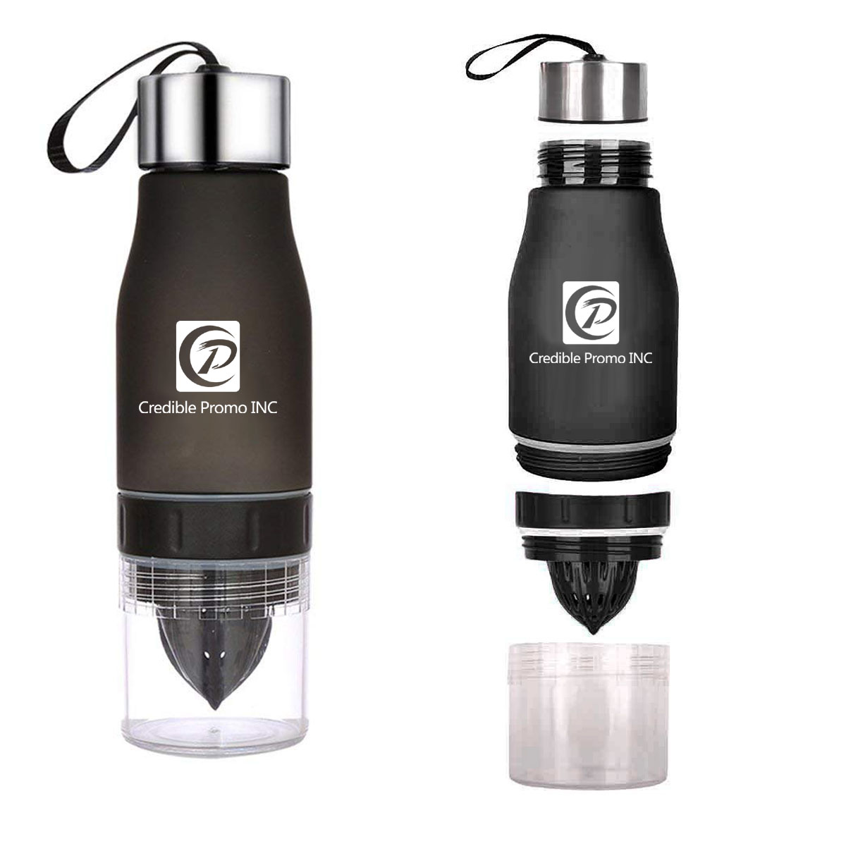 Removable citrus press from the bottom, easy to clean. Made with food-grade resin, capacity: 22oz. Used as juicer, fruit infuser and water bottle. Perfect for travel, sports, gym, office and home! Enough to meet your daily hydration needs. With the exclusive dual strainer and sleeve, you can put fruit on the outside of the diffuser for more fresh flavours.