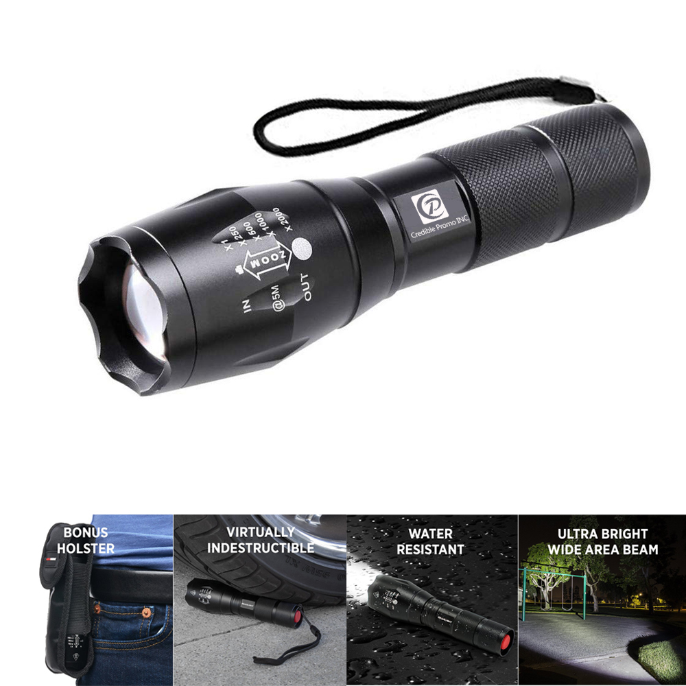 | Feature : | Outdoor Water Resistant LED Zoomable Tactical Flashlight with 5 Light Modes |