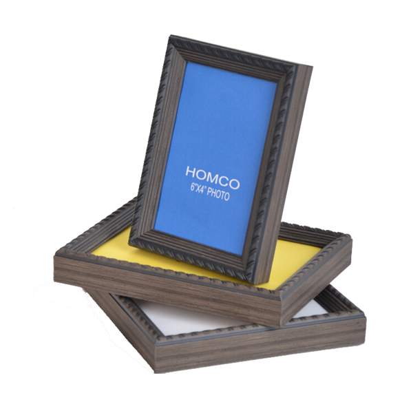 PS frame, photo size 4"x6". 1.5mm glass, color face paper, 2.5mm MDF back with easel,white corners and shrink wrap. We have other size for your option: 5"x7", 6"x8", 8"x10". Oversea production time around 10 days, and transportation time 25-35 days by Sea. Please contact us to inquiry.