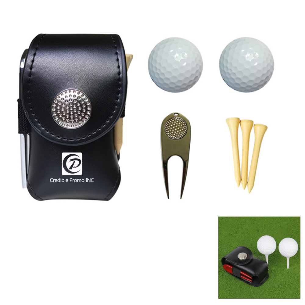The set include holder bag x1, golf ball x2, tee x3 ,divot repair tool x1 .The pouch bag is reusable . This small package with the basic accessories you need to carry with you so you can start playing when you find the right place.