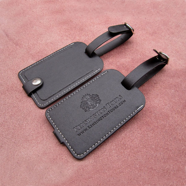 High quality PU leather luggage tag. With a name paper card inside. Buckle it on the luggage's handle with strap. Your company LOGO can be debossed on the surface.
