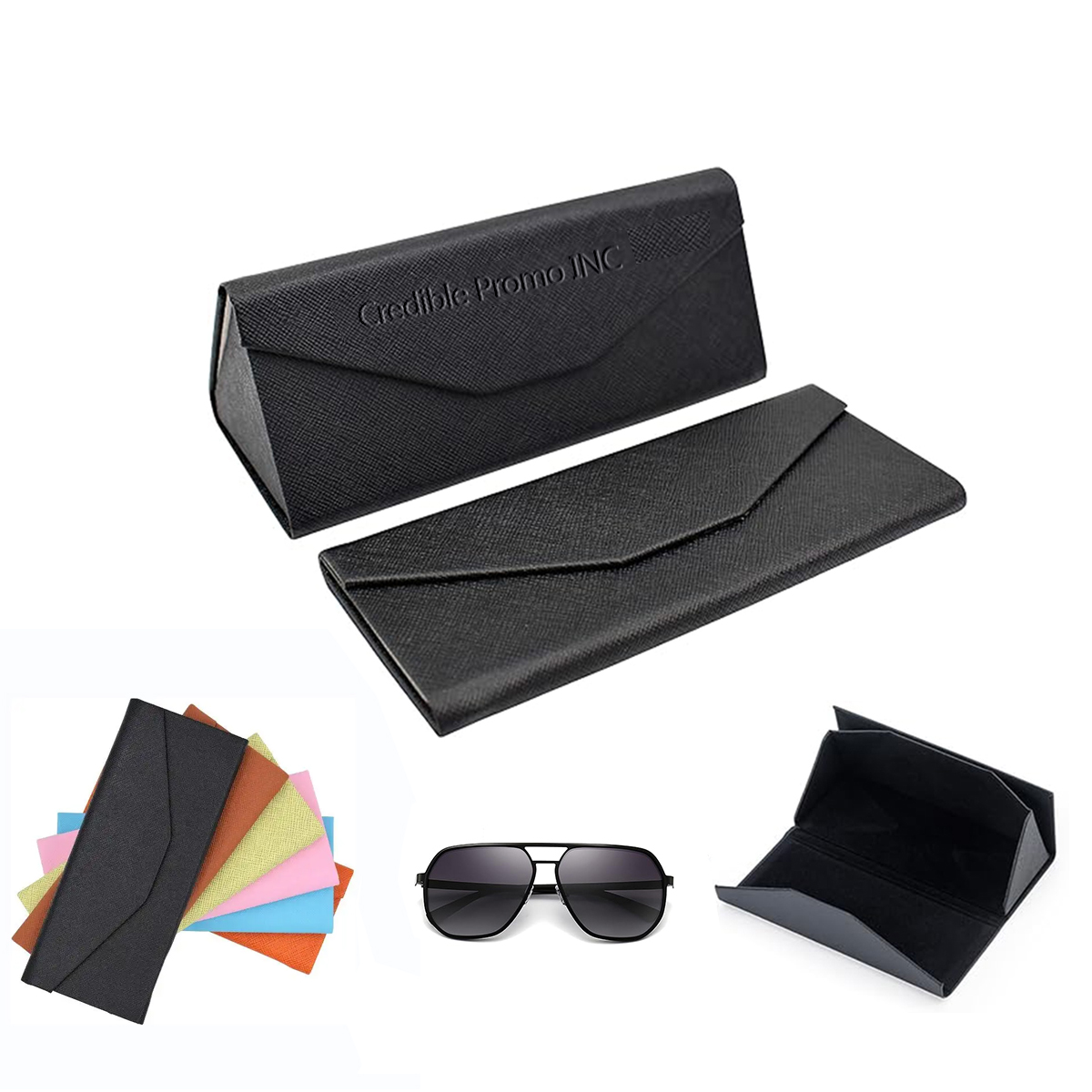 These triangular shaped compact cases easily slip into your handbag for storage on the go. They easily collapse up to 0.5 inch when not in use for fuss-free storage. Our foldable eyeglass cases with magnet closure protect your reading glasses, sunglasses, standard lenses from damage. Deboss logo can be imprinted on the product. Welcome to inquiry!
