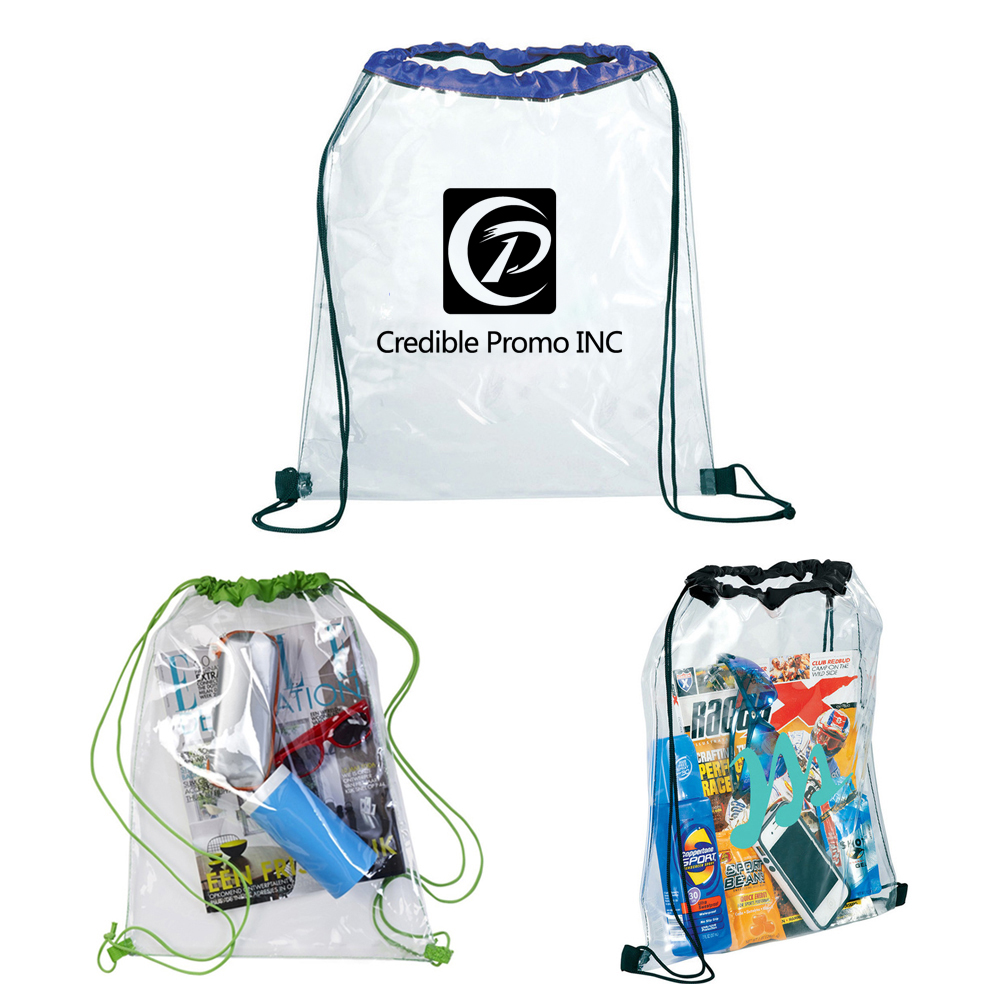 Today's venues are now requiring clear carrying bags for entry. If you want to bring personal items with you, you need to clear security with the right bag. We provide stadium approved bags to fit your phone, keys, wallets, and more at a price that does not break your budget. The cinch bag offers excellent countless uses for gym, travel, and shopping utilization. Our Bags are made of 0.2mm thickness clear PVC, also a water-resistant with 210D polyester seams and straps for added strength. Your LOGO or artwork can be imprinted on it.
