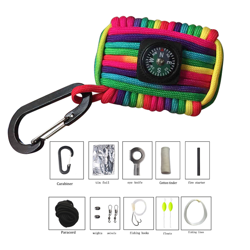 | Feature : | Survival Kit, Emergency Survival Kit, Fishing Kit, First Aid Paracord |