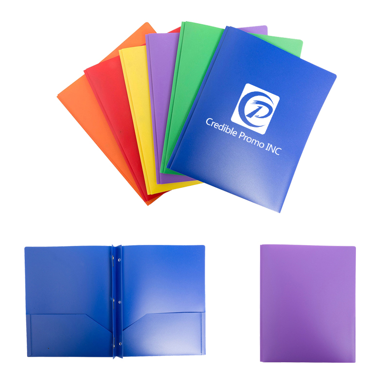 "Pocket folder is made of 0.36cm PP material. Durable and thick, can be used for a long time. 2 pockets and 3 hole punched sheets builted in, can hold up to 100 sheets of letter-size paper. A4 size, fit in most document. Perfect for work, business, office meeting, school, travel, storage, outdoor activities, and casual daily use. Your logo can be imprinted on the front page.