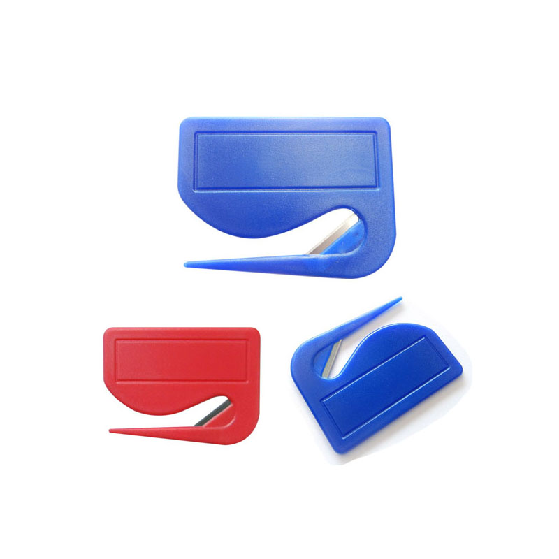 This plastic letter opener quickly opens any paper envelope. Rectangular shaped letter opener, solid design, safe, sharp stainless blade. Designed for promo gift, desktop, office, corporation, school, safety program, home.