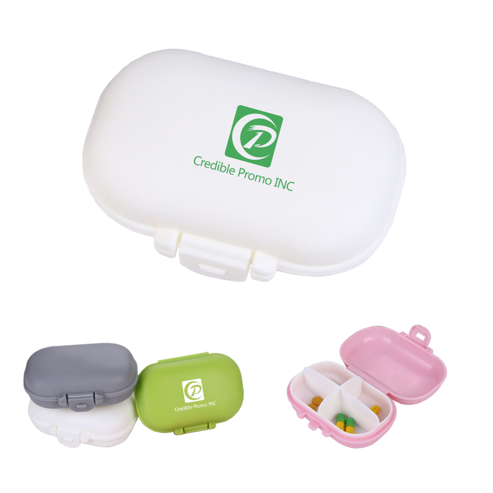 This Mini Pill Case fits right in the palm of your hands. Offers a slim and portable design to take up less space yet keep your meds neatly and discreetly more organized. 3 compartments to hold different types of pills. An ideal product for pharmaceutical companies and health organizations of any kind. Customize with your LOGO, perfect promotion at your next convention or tradeshow!