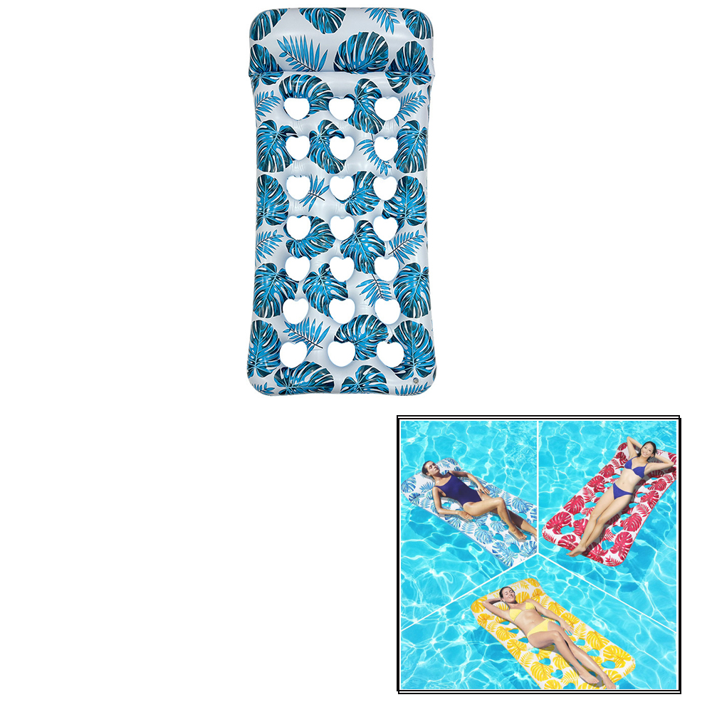 This oversized floating mat with Headrest is designed to meet the contours of the body, high-buoyancy lounger makes you comfortably lie on it just like lying on a soft bed in the pool, sunbathing, the ultimate in comfort and enjoyment this summer. Perfect for the pool party, sea, beach, lake or river summer vacation. There are three colors to choose from, which are blue, yellow and rose red.