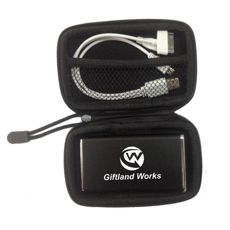 | Feature : | Polymer power bank kit, 3,000 mAh, with bag and cables. |