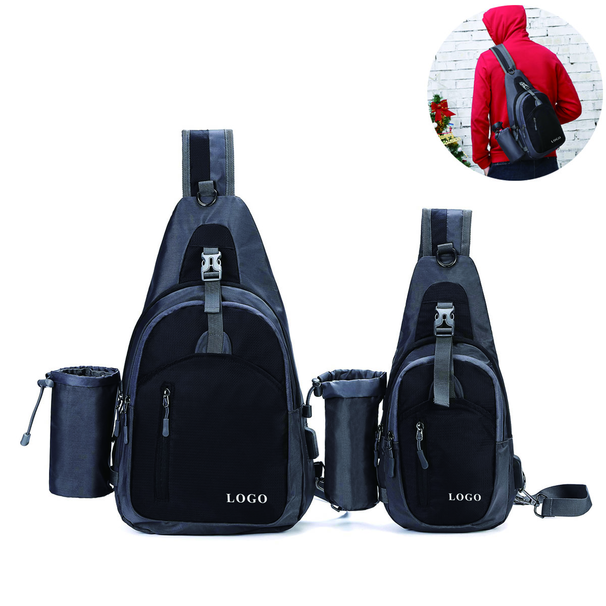 | Feature : | Premium USB Charging Sling Bag Crossbody One Shoulder Backpack with Detachable Water bottle Holder |