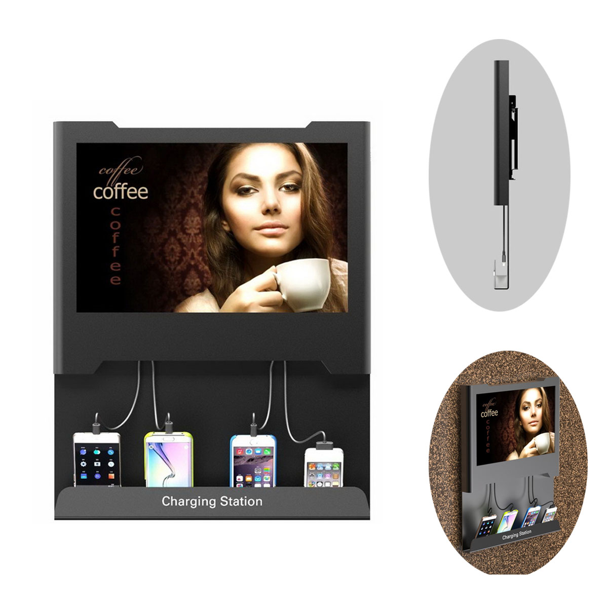 Public 19'' LED Digital Screen Wall-mounted Charging Station