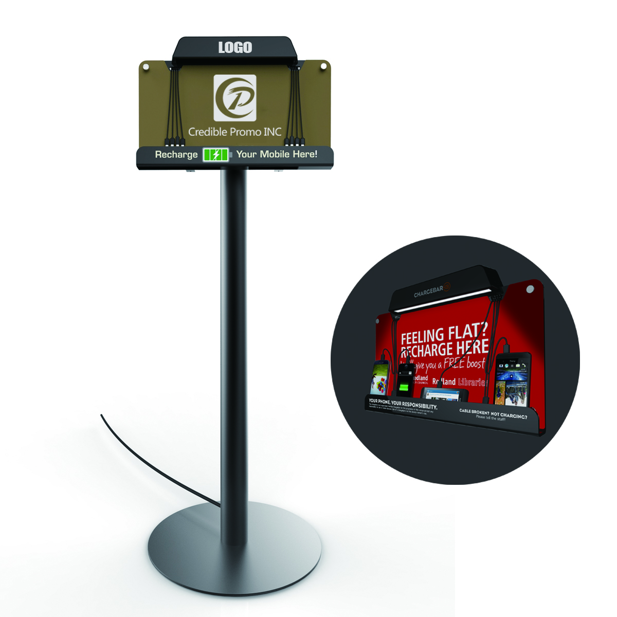 Public Cell Phone Charging Station Floor Stand Commercial Advertising Display