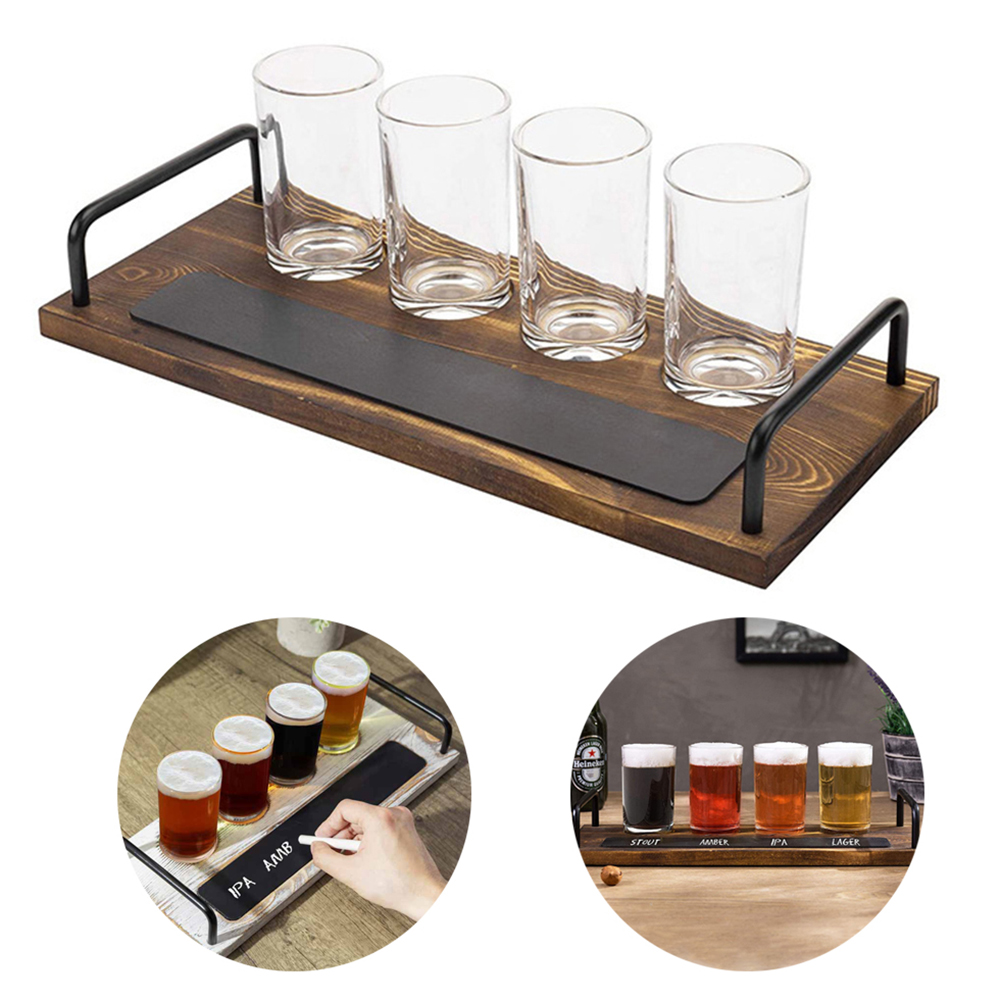| Feature : | Rustic Burnt Brown Wood Beer Tasting Flight Server Board With Black Metal Wire Handles |