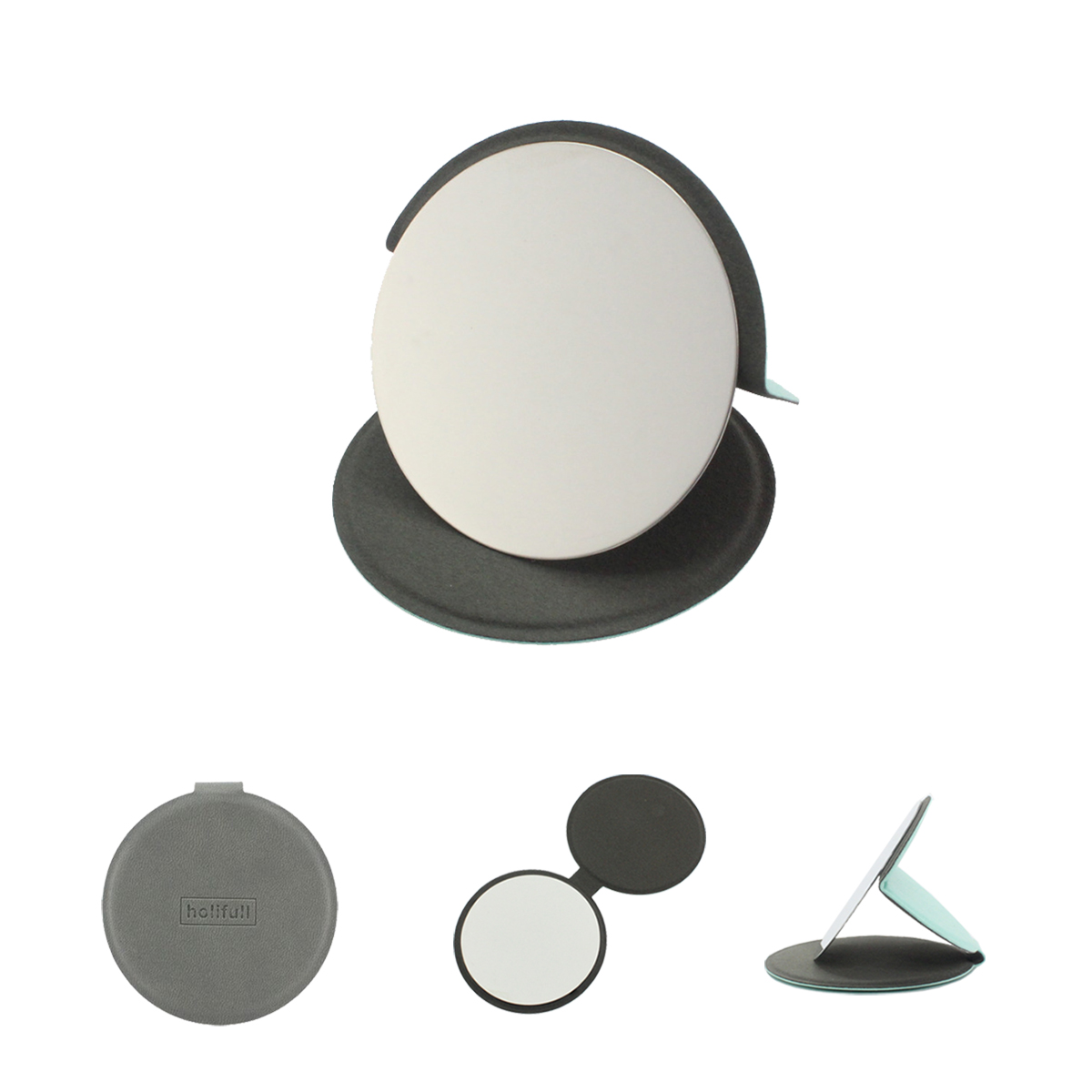 | Feature : | Shatterproof Stainless Steel Ultrathin Folding Round Travel Makeup Mirror with PU Leather Case Cover |