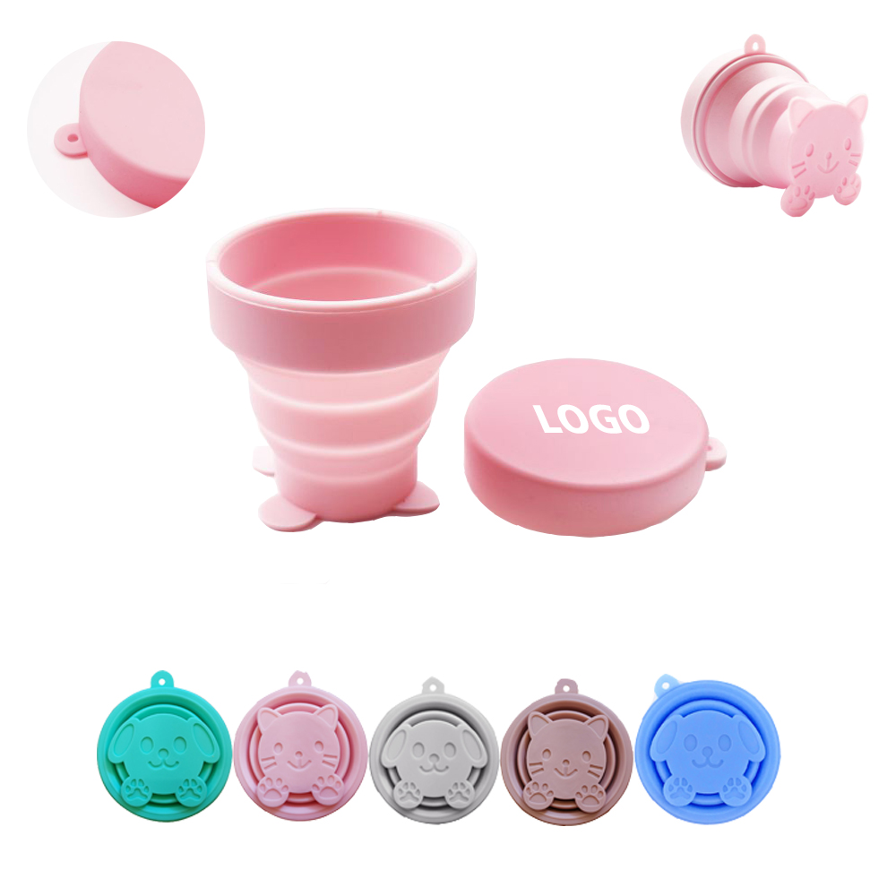 Made of food-grade silicone, our collapsible silicone cup is easy to clean, non-toxic, odorless, non-staining, durable, flexible and reusable. Collapsible design, easy to carry wherever you go. Lovely animal pattern on the bottom, large capacity of 170ml, 5.75 oz. Fits well in your pocket, purse, backpack, suitcase and takes up no space, ideal for outdoor hiking, camping, travel, and sport events . 5 colors available. Perfect promotion with your LOGO. Please contact us for more details.