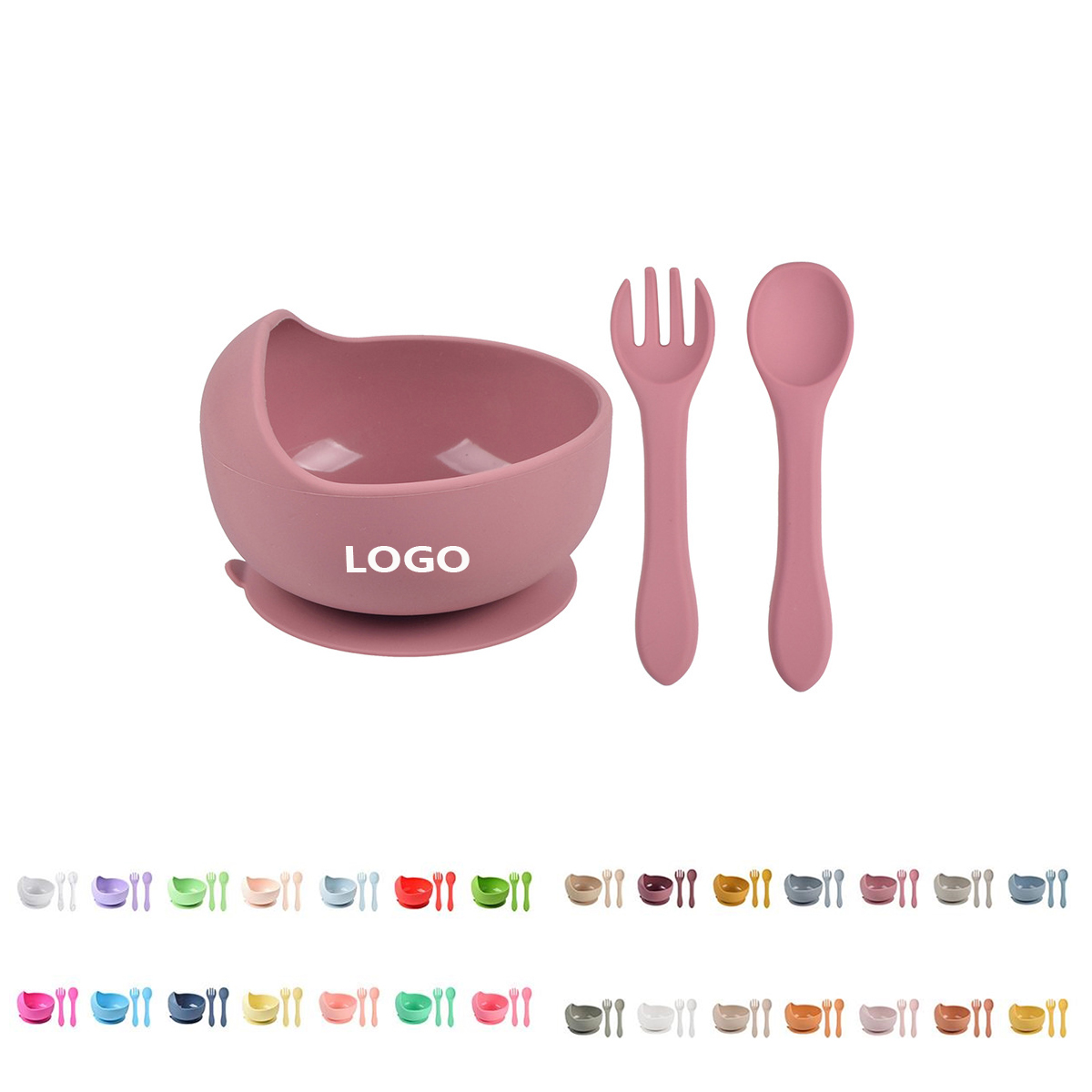 The silicone toddler feeding set including 1 baby bowl with suction, 1 baby spoon & 1 fork. Baby tableware set are made from BPA, PVC, LEAD free food grade silicone. It is soft, chewable and gum-friendly. The strong silicon suction bowl can stick on the high chair tray & smooth flat surface. It's hard to pry it off table.