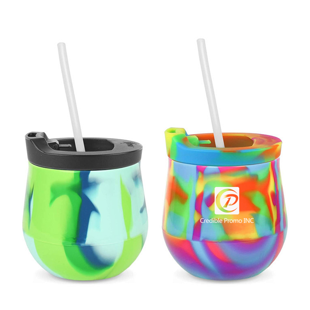 Silicone Unbreakable Wine Tumbler with Lid and Straw