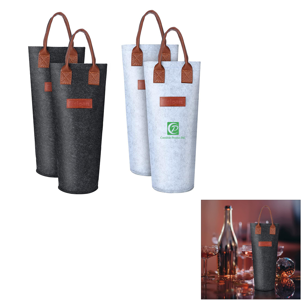 Single Insulated Felt Bottle Wine Tote Bag With Leather Handle