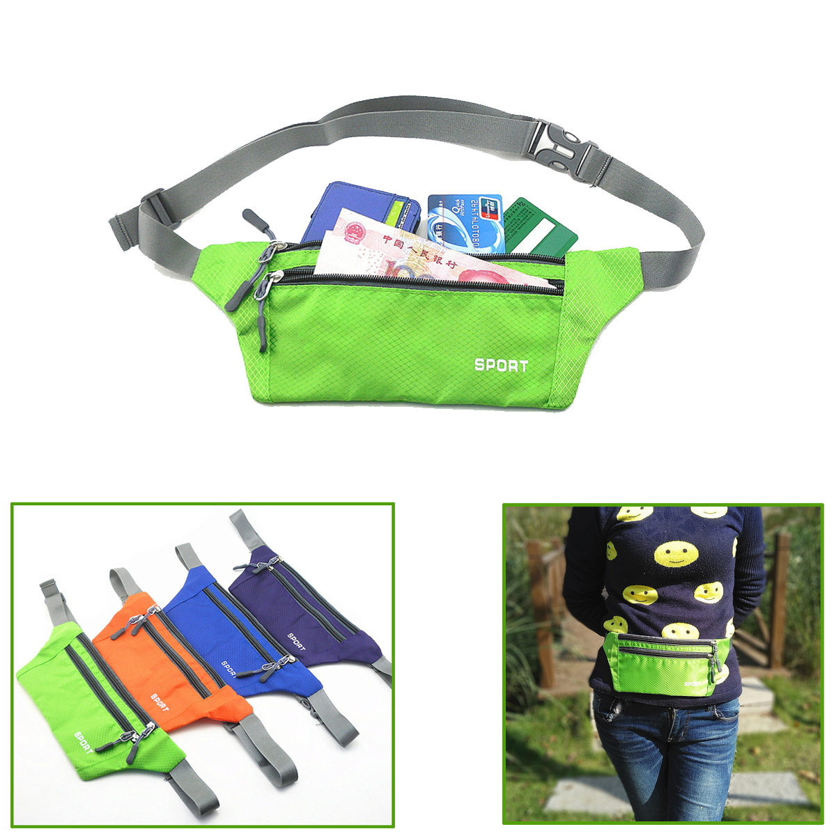| Feature : | Slim Lightweight Sports 2 Zippered Fanny Pack Or Hip Pack |