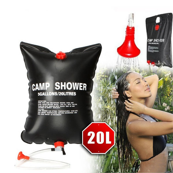 Made for showering or washing at the campsite with warm water. The smart black PVC material can efficiently absorb the solar energy to heat up the water inside the bag. It heats water to 113 F degree (45 C degree) in 3 hours with direct sunlight. Handy on/off valve. Strong handle for reliable hanging and carrying. Holds 5 gallons - lasts 5 minutes with valve full open or 10 minutes half open. Great for camping trips and during emergencies when hot water isn't available.