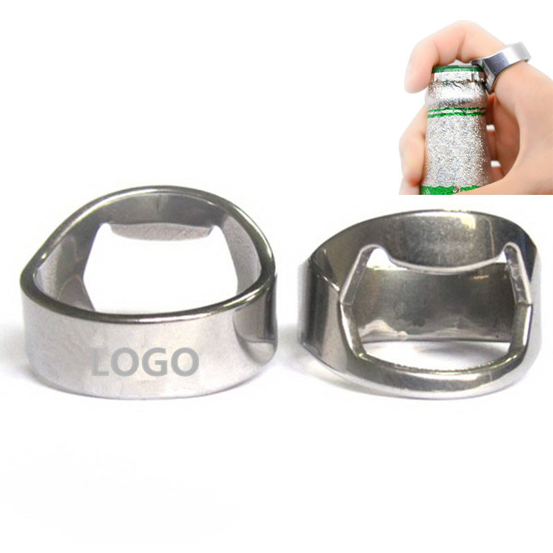 The ring bottle opener is made of stainless. The tiny shape ring shape bottle opener is easy to put on your finger and take everywhere.It's easy to open beer. It is also a cool decoration when wearing. Laser your special name or logo on the back make it specific. This item is great promotional giveaway to build brand expanding.