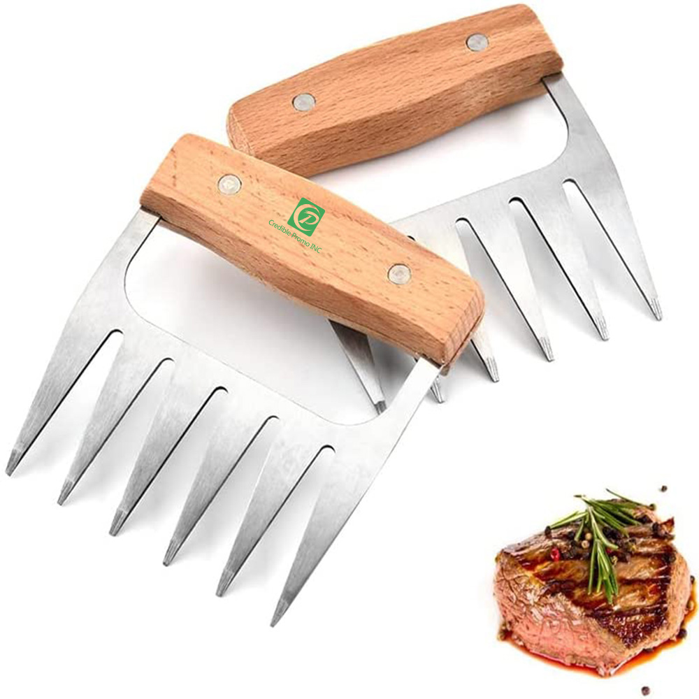 The tips of these stainless steel meat claws will not bend or melt under high heat temperature like plastic and nylon meat claws. The pulled pork/meat shredder claws will protect your hands as they are made of high-quality bamboo wood. It's very durable, sturdy and strong. Stainless steel BBQ meat shredding claws are the answer to perfectly shredded meat without the mess and headache of knives and forks. Remarkably faster and easier than using two meat forks to shred your pork or any meat. Pricing is for one piece.