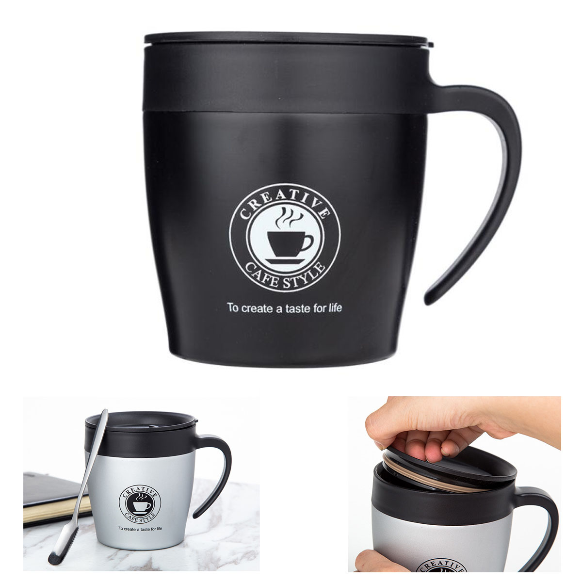 Stainless Steel Insulated Coffee Mug with Lid and Spoon
