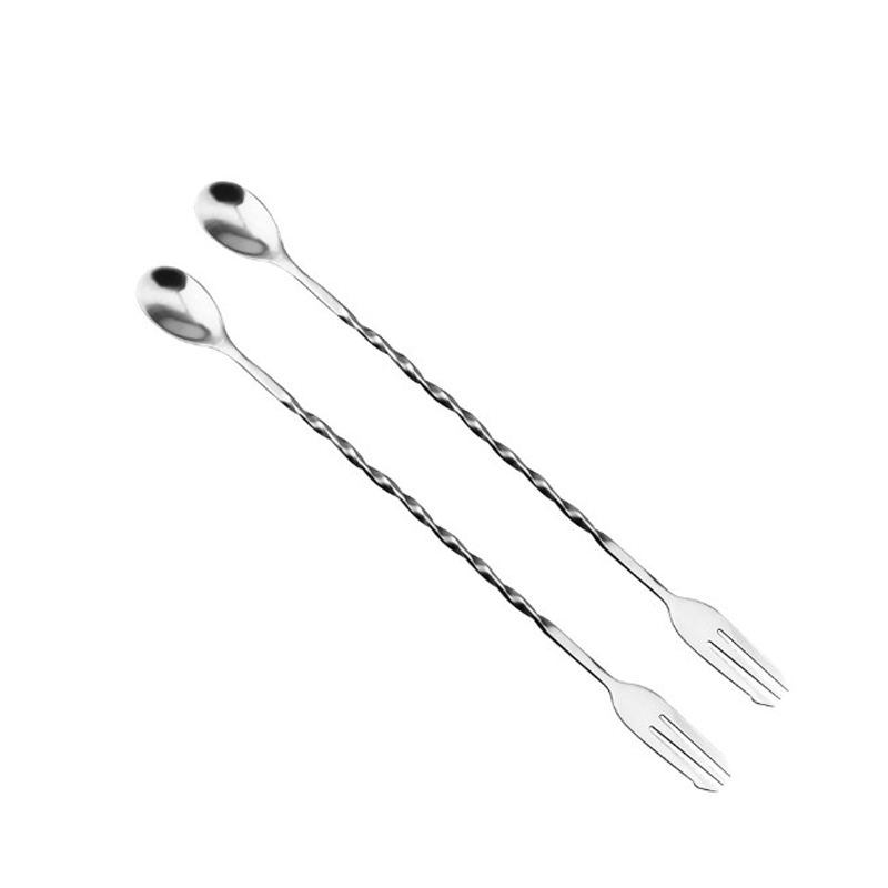 | Feature : | Stainless Steel Coffee Long Twisted Mix Spoon Stirrer Swizzle Stick Bar With Fork Tip. |