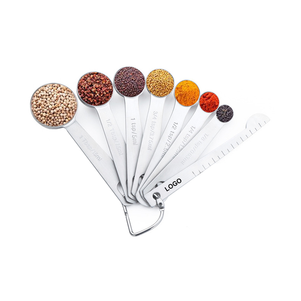 Made of strong and long-lasting stainless steel which is stain and rust-resistant. Can used for any food and will not be polluted or eroded, make your cooking safe and healthy. 8 spoons in a set, measurements of each spoon are engraved on handle. Accurate measurement ensures your food tastes perfect. Your LOGO can be imprinted on the spoon.