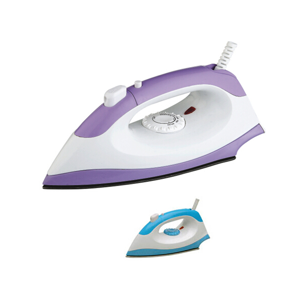 Steam Iron, made from plastic body and aluminum soleplate. Dry function, various temperature control. Rating data: 110/240V; 50/60Hz;1200W. Two kinds of soleplates for your option, one is teflon plated, the other is stainless steel wrapped. With UL wire and plug. Your company LOGO can be imprinted on. Oversea production, around 40 days.