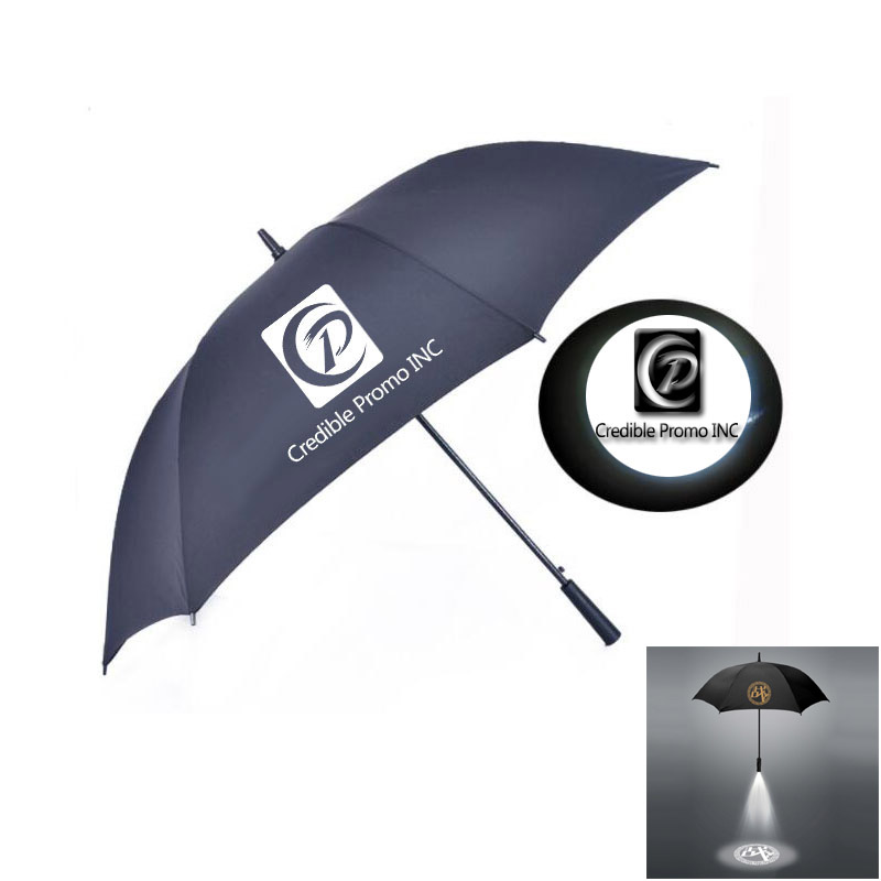 Give your clients full coverage from the rain while fully exposing your brand! This oversized projection golf umbrella has an EXTRA LARGE 51 inch (130cm) diameter canopy that provides perfect protection not only for you but your better half as well, your kids or even your dog! Expose your brand by Handle's amazing projection function at night, your end customer will be surprised to see your projective artwork and keep a deep impression. Custom imprinted logo and projective logo is available. List price is based on leadtime appr 50-55 working days.