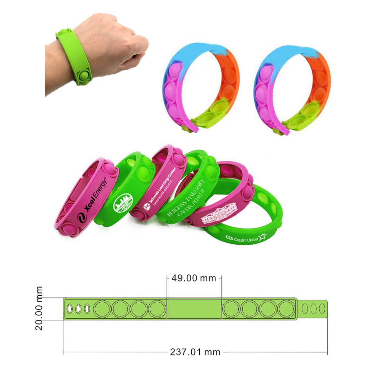| Feature : | Stress Relief Push Pop Bubble Silicone Wristband Fidget Bracelet Toy |