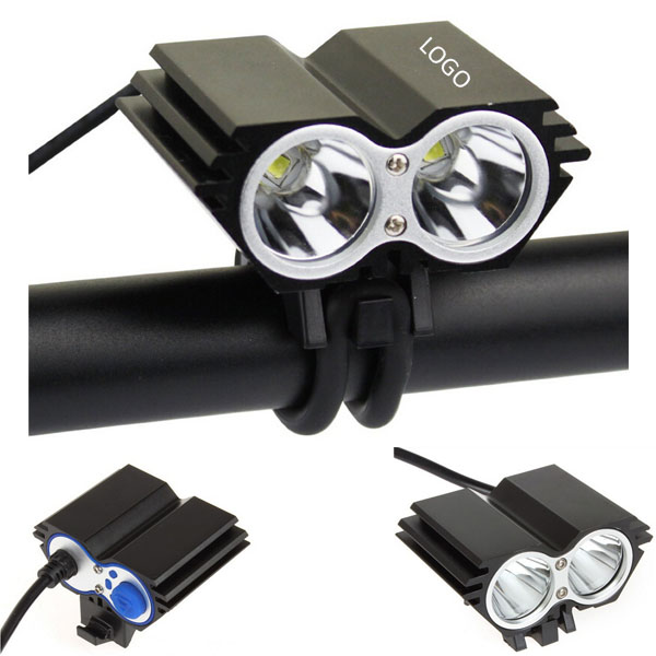 Waterproof bike headlight uses 2x T6 LEDs as its light source. Intelligent circuit control. 4 switch modes: Strong/ Normal/ Low/ Flash. The max output can reach to 2400 lumens. It's almost as bright as a car headlight. 10400mah Li-ion rechargeable battery included which with full charge can work over 6 hours in strong mode. Timely battery indicator helps you master battery condition. It is perfect for outdoor activities like camping, fishing, hiking, map reading, sailing, caving and hunting. Package Content: 1 x 2CREE XML U2 white LED; 2 x Rubber Ring For Installation; 1 x 10400mah Li-ion Rechargeable Battery; 1 x US Charger (100v-240v).