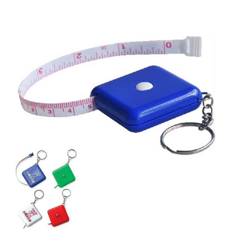 Tape Measure with keychain, Square Shape. Length is 59 inches. One side is inch scale, the other side is centimeter scale. Your LOGO can be imprinted on the shell.