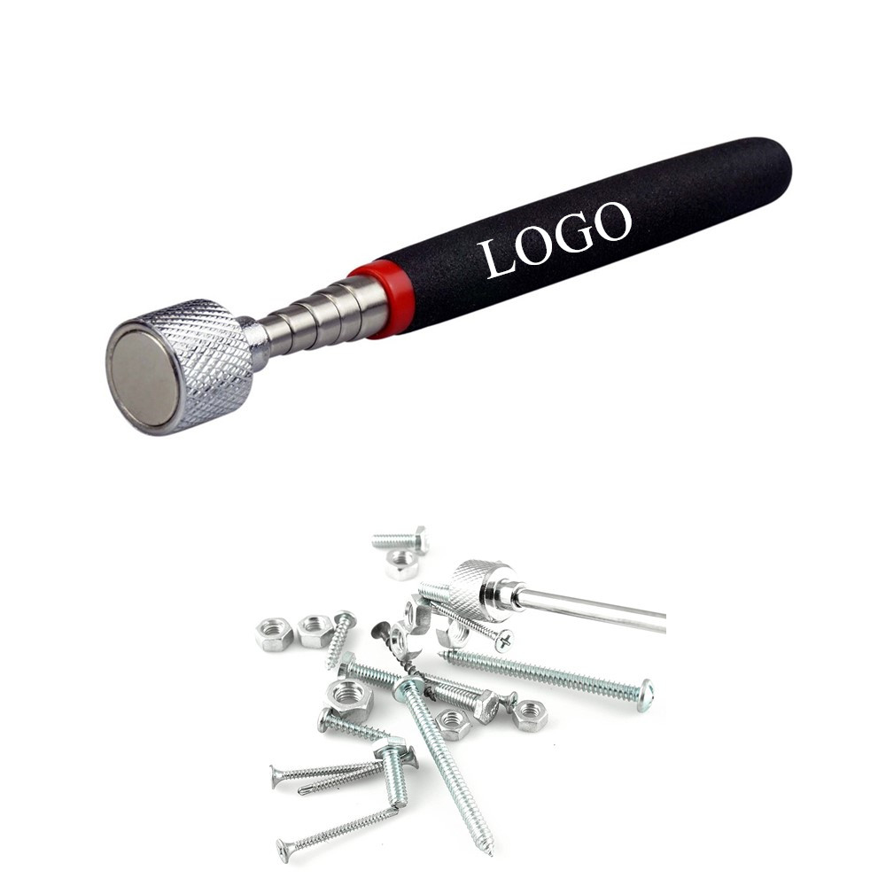 It's a telescoping magnet, it has a long handle and it extends from 6.5 inches to 24.5 inches. That is a lot of reach for nearly every practical purpose. Easily find and grab small tools or hardware in hard to reach areas such as cars, behind the work bench, or around the house. It can even grab those pesky items that fall behind cabinets, entertainment center or refrigerator. Helpful when working in automobiles, construction, and other home projects. Your LOGO or artwork can be imprinted on it.
