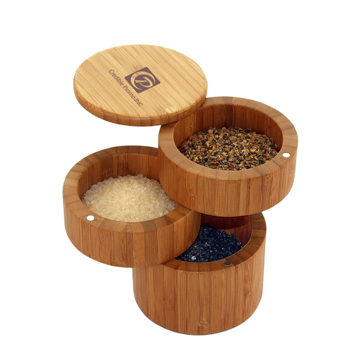 Three Tier Bamboo Salt Box With Magnetic Swivel Lid