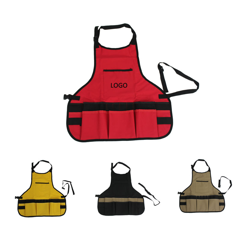 This tool apron is great for an easy grab for all your handy repairs or hard work. Fully adjustable belt with quick-release buckle. Adjustable neck loop. Your logo artwork can be imprinted on it, and custom color is available.