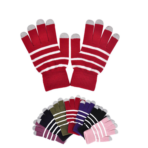 These touch screen gloves, made from fine knit acrylic yarn, with conductive fiber on five finger tips, warm and sensitive. They are applicable to all touch screen mobile phones as well as bank ATM machines.The conductive fiber on the tips is harmless, and will never scratch your screen. Many colors and three size for your option.