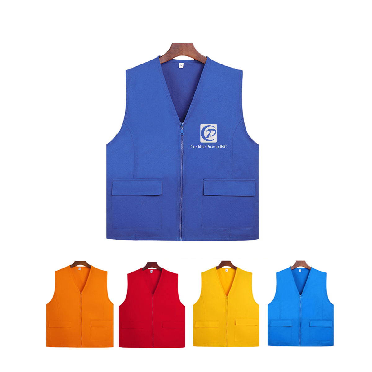 Uniform vest is made of polyester. Lightweight and loaded with multi-pockets to keep everything you need. Featuring v-shaped neckline, zip front closure design. Ideal as commercial team uniform, work uniform for supermarket, department stores, hardware stores, volunteer, cleaning services, can be worn as casual vest.