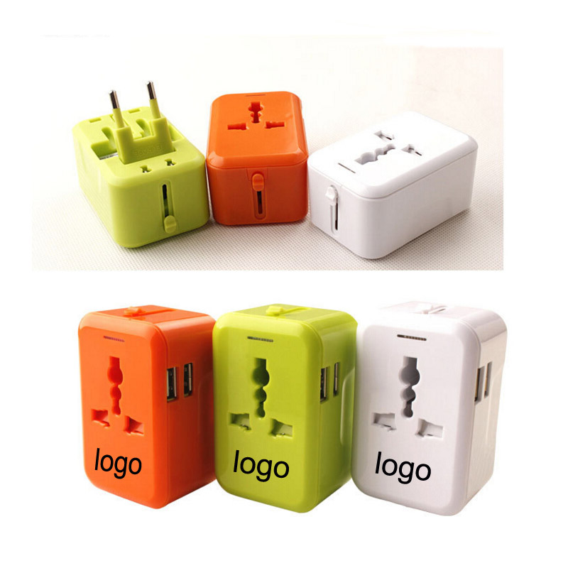 Universal portable world wide travel adapter with 2 USB ports, 3 plugs build-in one. It's a small pocket-sized power adapter set for go-anywhere convenience. This all-in-one unit provides plug adapters for use in more than 150 countries, such as USA, UK, EU, AUS, Asia and so on. So you never need to be at a loss for power again. With CE & Rohs certificate. Rated voltage 110-240 V/AC, Rated current: 10 A. Many colors and your customized logo is available.