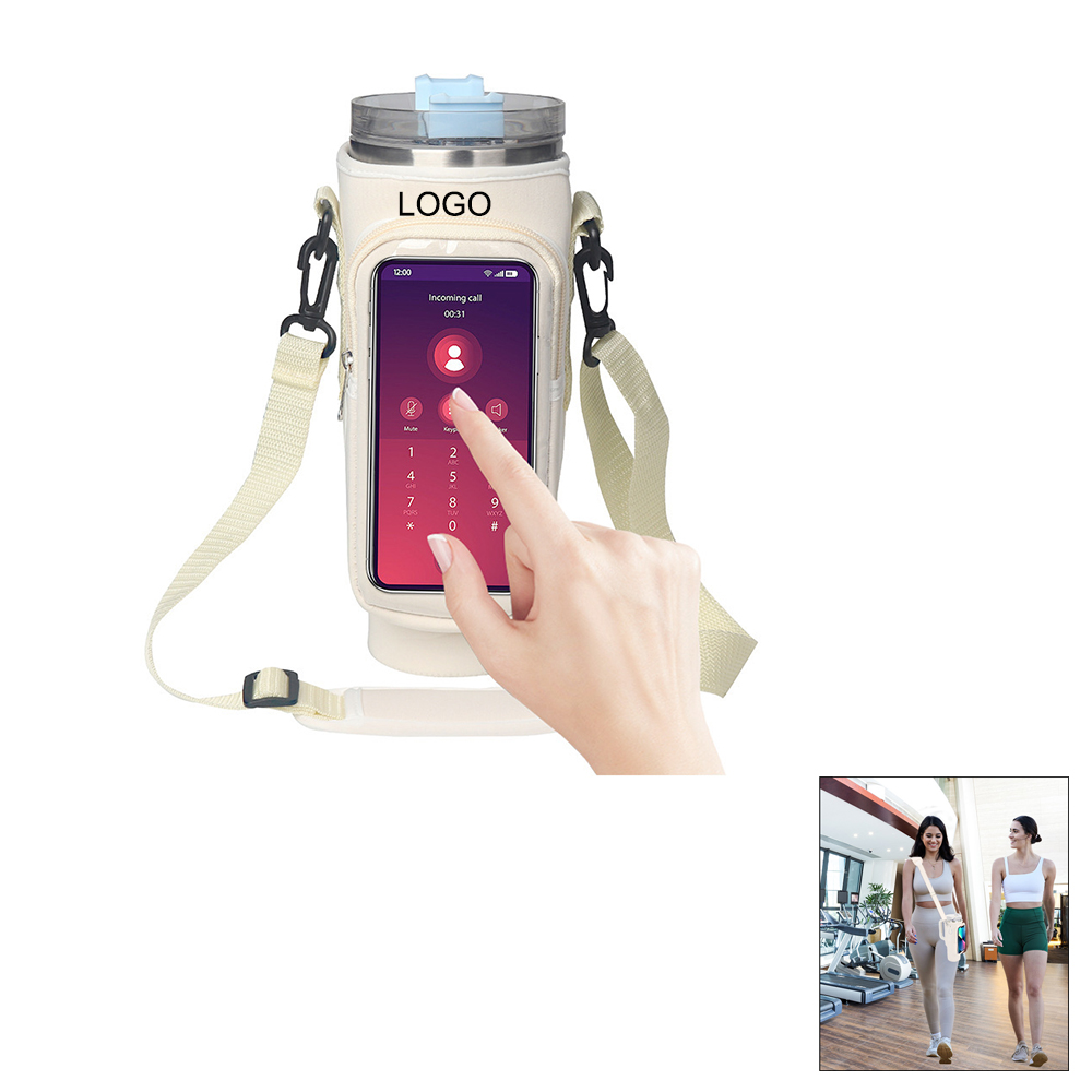 Water Bottle Carrier Bag With Strap And Clear Phone Pocket For 40Oz Tumbler