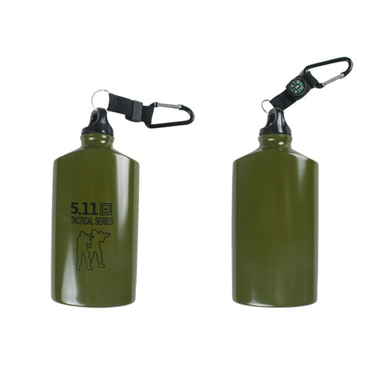 Army water bottle with compass and carabiner, made from food grade aluminum alloy. BPA free.Volume is 16 OZ/500ML. Your indispensable partner when go out for camping, finshing, climbing,hiking or other outdoor activities.