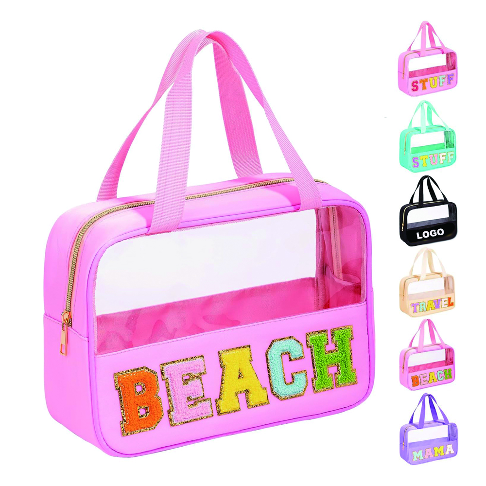 Waterproof Chenille Letter Patch Clear Makeup Bag With Handle