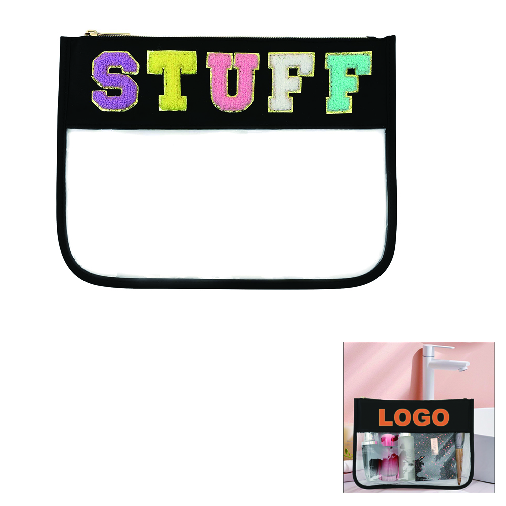 Waterproof Chenille Letter Pouch Clear PVC Makeup Bag Flat Pouch