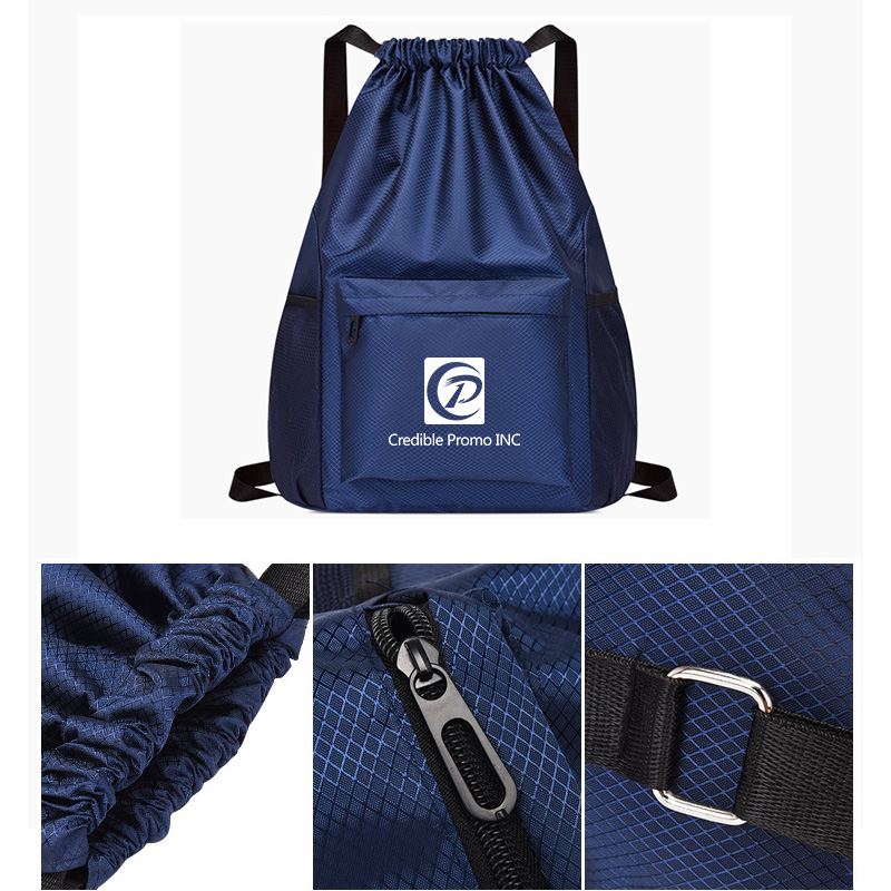 Waterproof Drawstring Gym Backpack Bag With Front Pocket