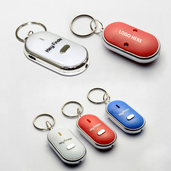LED flashlight whistle key finder keychain with switch control. This fantastic Whistle Key Finder beeps and flashes when you whistle! Find your key or any other items easily. LED torch, convenient to look for the lock eye. Small in size, portable and convenient. Powered by 2 AG3 batteries (included). ideal item for promotion and personal security gifts.