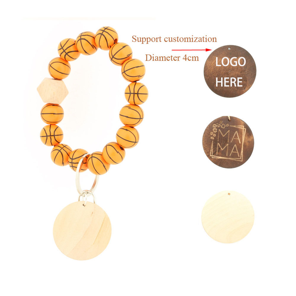 | Feature : | Print Logo Wooden Beads Ball Sports Theme Bracelet Keychain |
